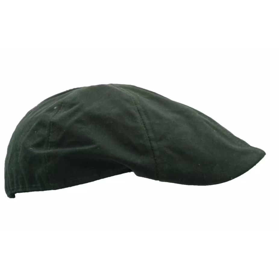 Olive keps i 100 % vaxad bomull, med ett inre trimband för extra komfort. Kepsen är vattentät med ett brett brätte för vatten- och solskydd.