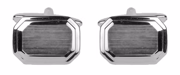 Eleganta manschettknappar i en rektangulär form. Ytterkanterna är blankpolerade medans mittenpartiet är borstad rodiumplätering.
