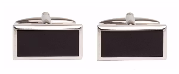 Eleganta manschettknappar i en rektangulär form med Onyx i centrum. Ytterkanterna är blankpolerade rodiumplätering.