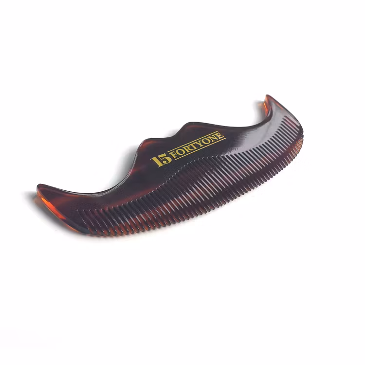 Denna kamm från 1541 London är en fintandad mustaschkam i fickformat utformad som en mustasch.