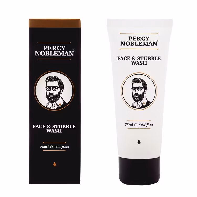 Percy Nobleman Face & Stubble Care Kit är ett presentkit för hudvård/skäggstubb. Fuktighetskräm och rengöring förpackat i en snygg presentkartong, tillsammans med en lyxig ansiktshandduk.