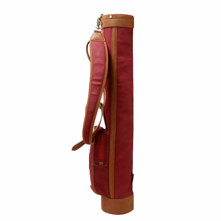 Nytillverkad röd pencilbag i canvas som är perfekt för 5-6 klubbor. Rund öppning på bagen på ca 11,5 cm med en divider. Längden på bagen är 78cm. Stabil och vadderad bärsele samt bärhandtag. En sidficka med dragkedja som mäter ca 25x12cm.