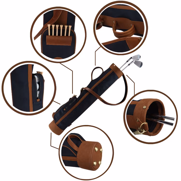 Nytillverkad svart pencilbag i canvas som är perfekt för 5-6 klubbor. Rund öppning på bagen på ca 11,5 cm med en divider. Längden på bagen är 78cm. Stabil och vadderad bärsele samt bärhandtag. En sidficka med dragkedja som mäter ca 25x12cm.