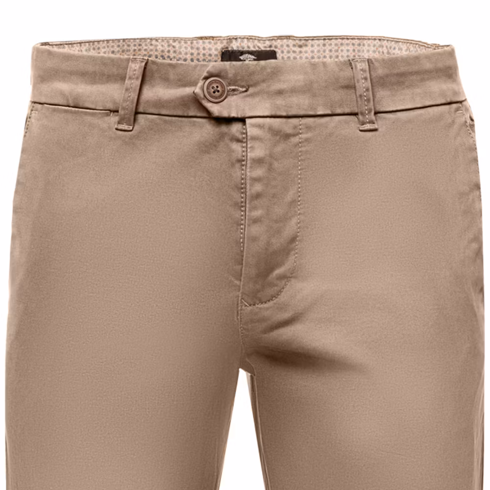 Beige chino byxa från Fynch-Hatton tillverkade av bomull med bra stretch. Byxorna har en modern passform och smala ben samt två sidfickor och bakfickor.