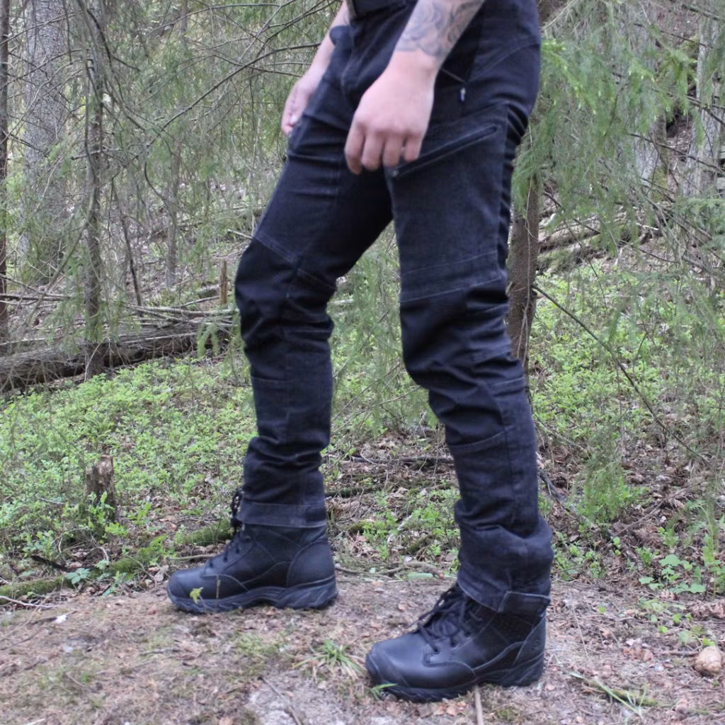 Byxan är sydd med 220 grams tyg; 65% Polyester 35% bomull. Tyget och paneler är i 4-vägsstretch.