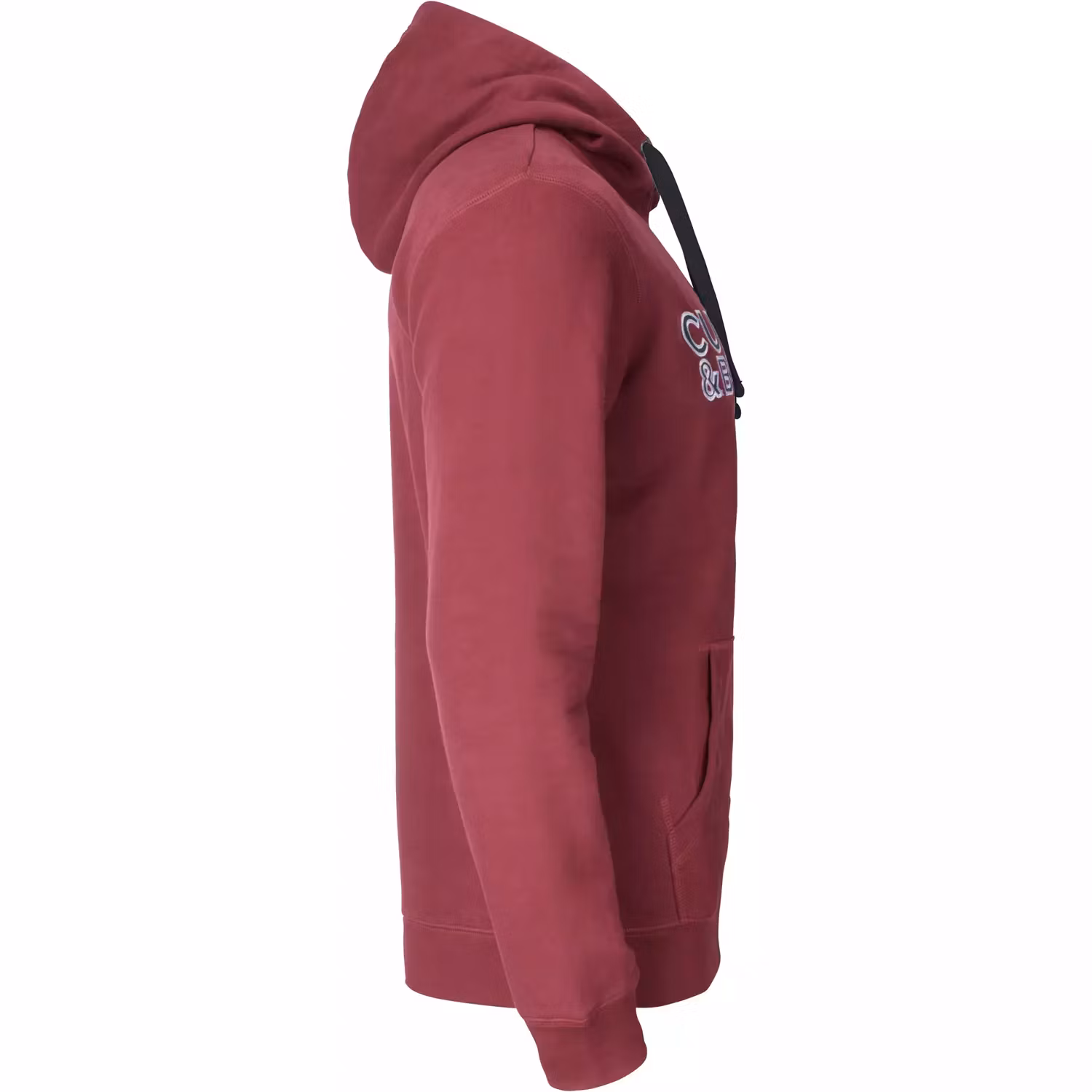 Klassisk hoodie från Cutter & Buck i matigt och mjukt, lite tjockare tyg som genomgått en extra finish. YKK metalldragkedja och känguruficka framtill. Fodrad huva och snören i kontrastfärg. Dekorerade med CUTTER & BUCK brodyr framtill. Ribbavslut nedtill och ärm. Öko-tex certifierad.