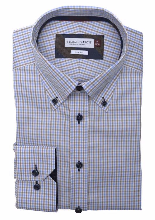 Ljusblå/brun rutig skjorta - J.Harvest & Frost