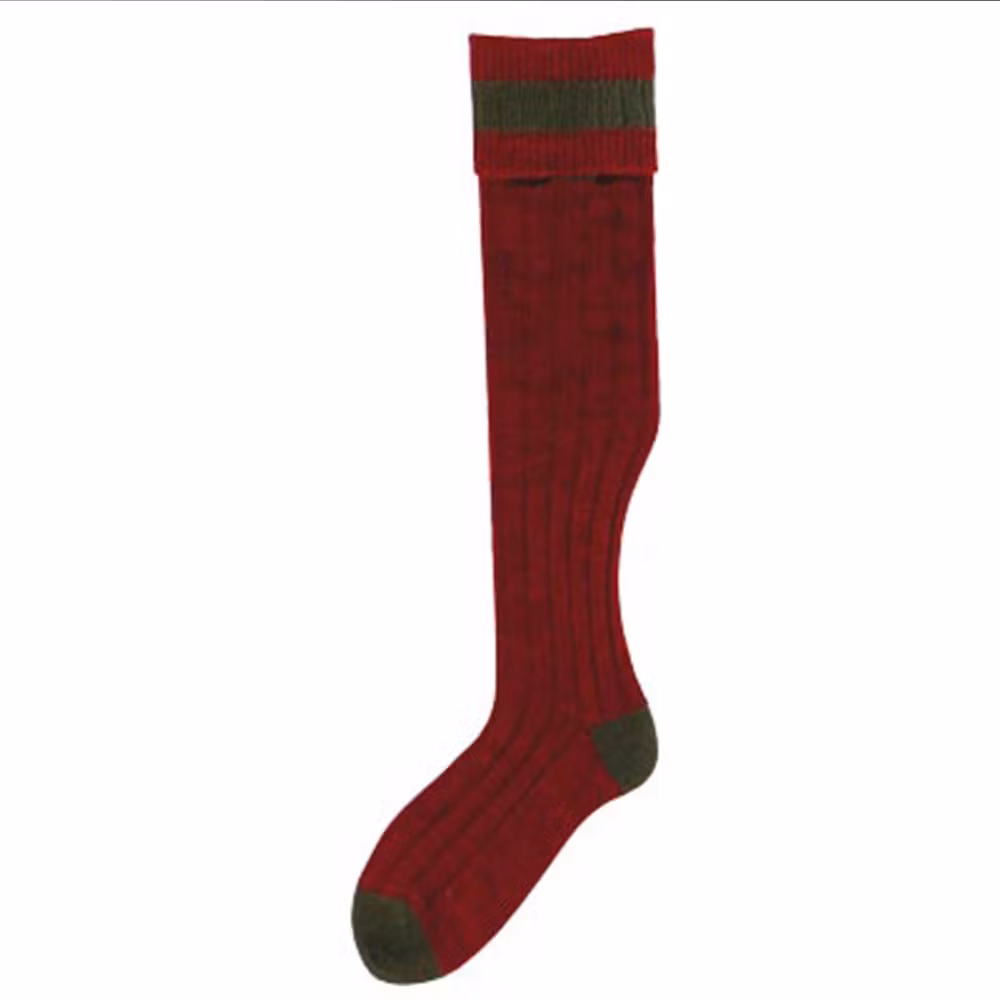 Skön, varm och lite tjockare vinröd knästrumpa med högsta komfort tack vare det höga ullinnehållet från engelska Bisley.