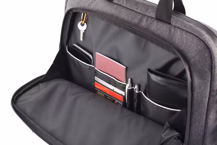 En klassisk smal laptop väska, men ändå rymlig med plats för såväl laptop upp till 15" eller läsplatta som prylar, mappar, papper och andra nödvändigheter. Ett stort huvudfack och en ficka fram med en stor ficka med småfack och hake för nycklarna. TPU dragkedjor och reflekterande zippullers.