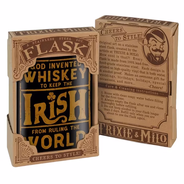 Irish Rule the World - originalkonst på en fickplunta av rostfritt stål; skapad av artisterna Trixie & Milo - hur coolt är inte det?