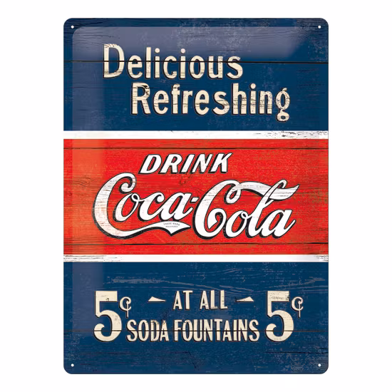 Finns i lager för omgående leverans! Plåtskylt - "Coca-Cola Delicious Refreshing" 30x40 cm 229 kr Lägg i varukorgen Artikelnummer: 301132 Leverantör: Nostalgic Art Snygg retroskylt för Coca-Cola fantasten. Passar lika bra hemma som på kontoret. Fyra hål i kanterna för upphängning.Storlek: 30x40 cm.