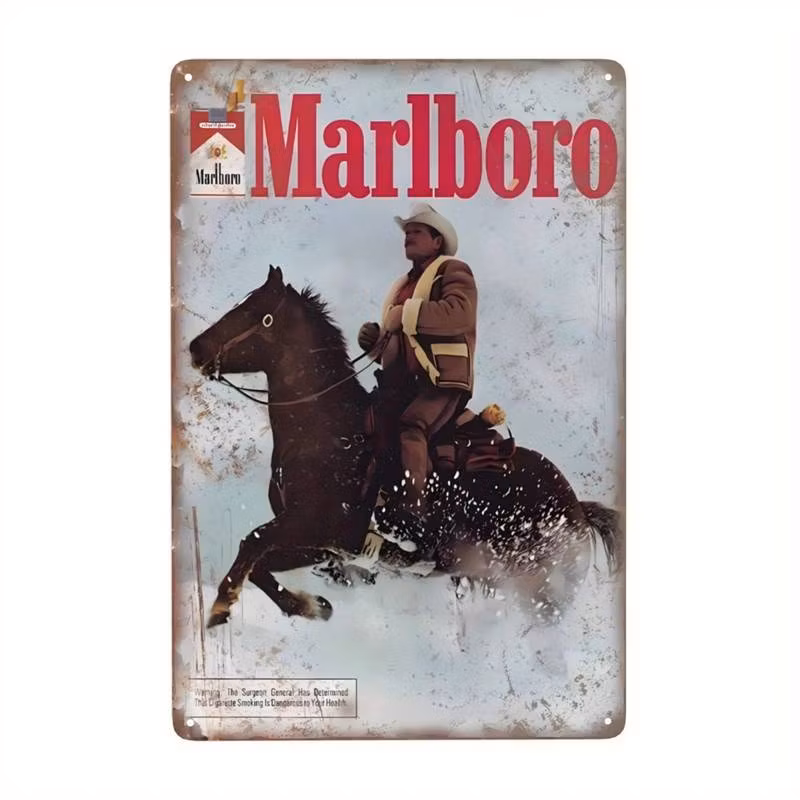Finns i lager för omgående leverans! Plåtskylt - "Marlboro" 20x30cm 149 kr Lägg i varukorgen Artikelnummer: 301155 Leverantör: Snygg metallskylt i retrostil - "Marlboro". Fyra hål i kanterna för upphängning.Storlek: 20x30cm.