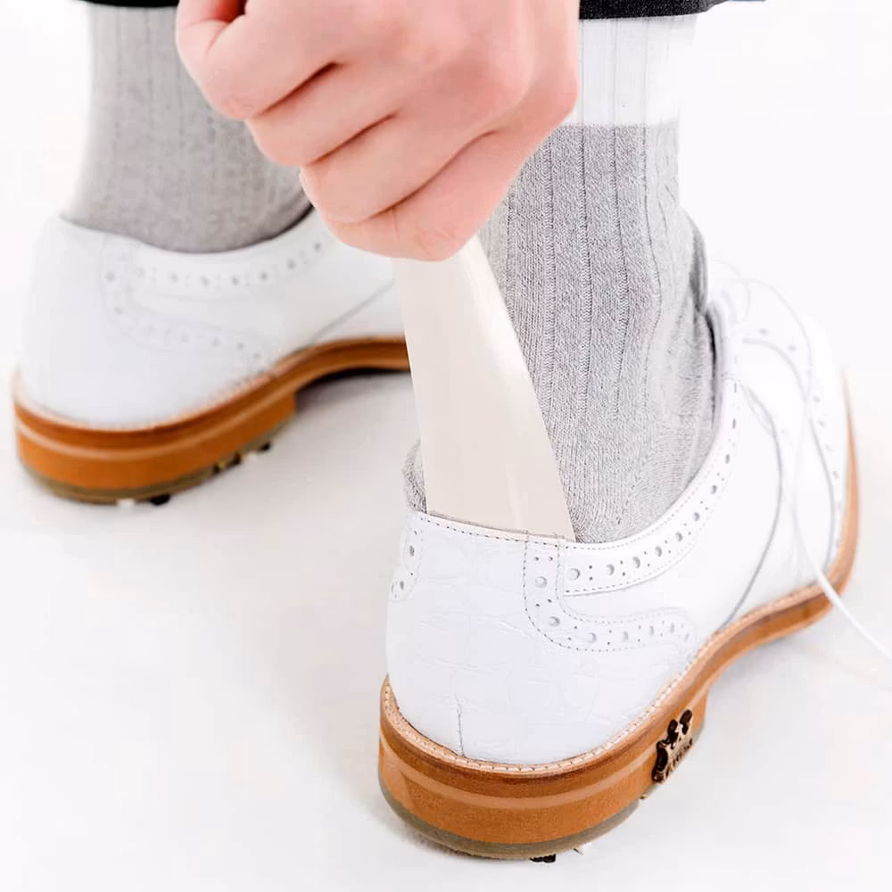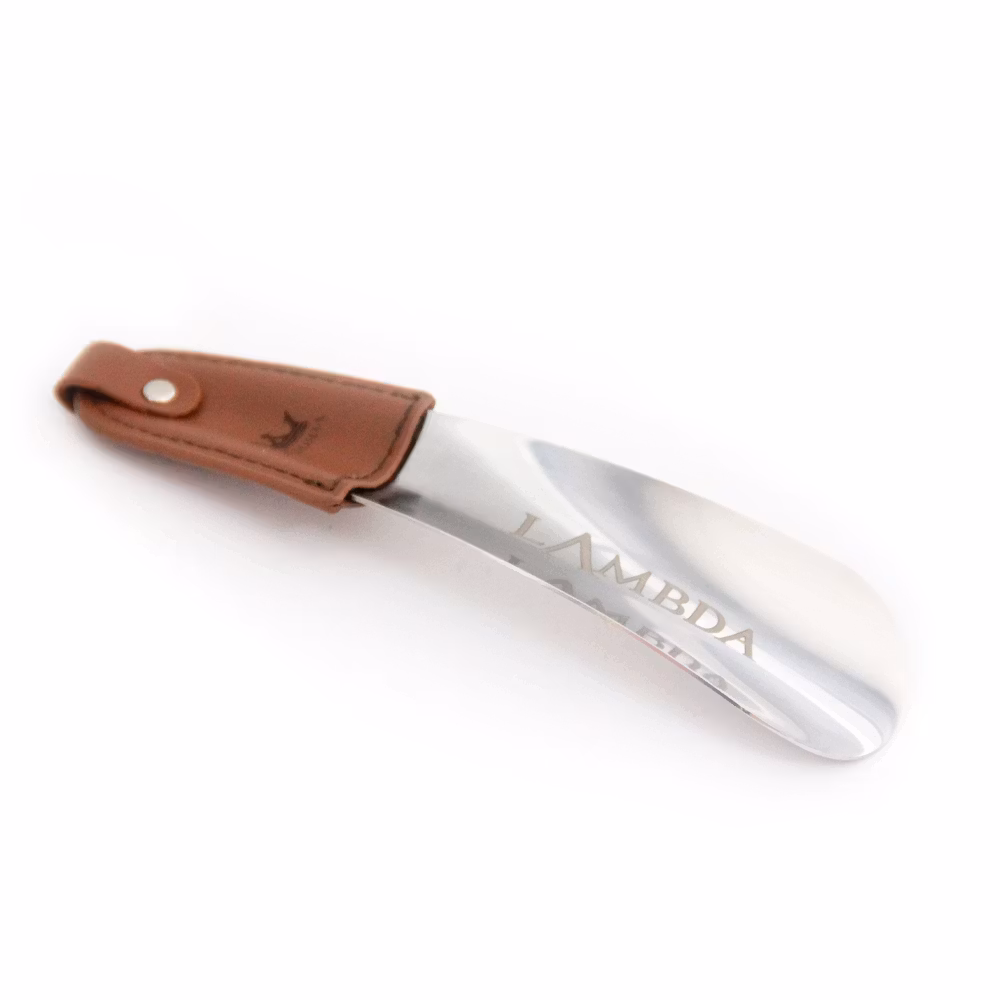 Finns i lager för omgående leverans! Skohorn - Lambda 249 kr Lägg i varukorgen Artikelnummer: 904443 Leverantör: Lambda Elegant skohorn från Lambda som är tillverkare av golfskor i Portugal.Material: Metall och läder.Storlek: Längd 17cm, bredd 4cm.