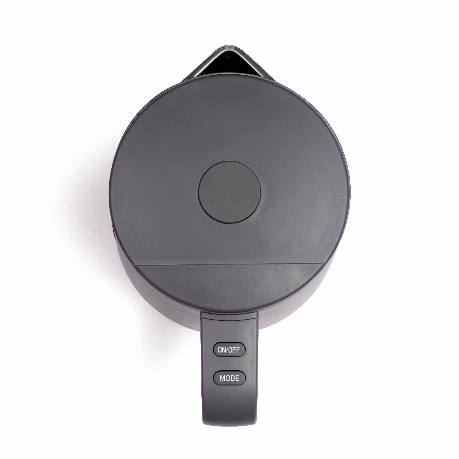Snygg grå vattenkokare med digital visning av temperaturförlopp. Välj mellan fem olika temperaturer: 40, 60, 85, 90 samt 100°.