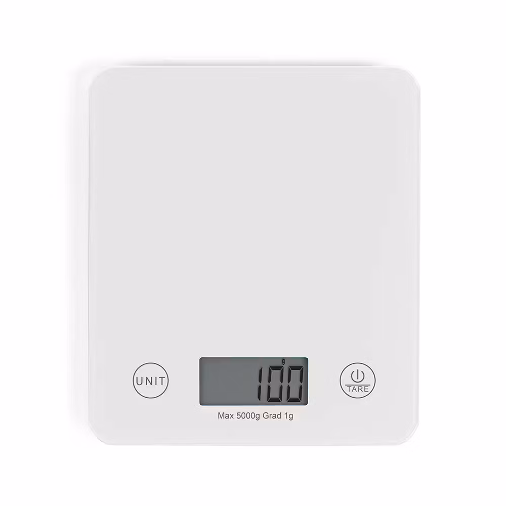Vit elektronisk köksvåg från Livoo med en kapacitet på 5kg.