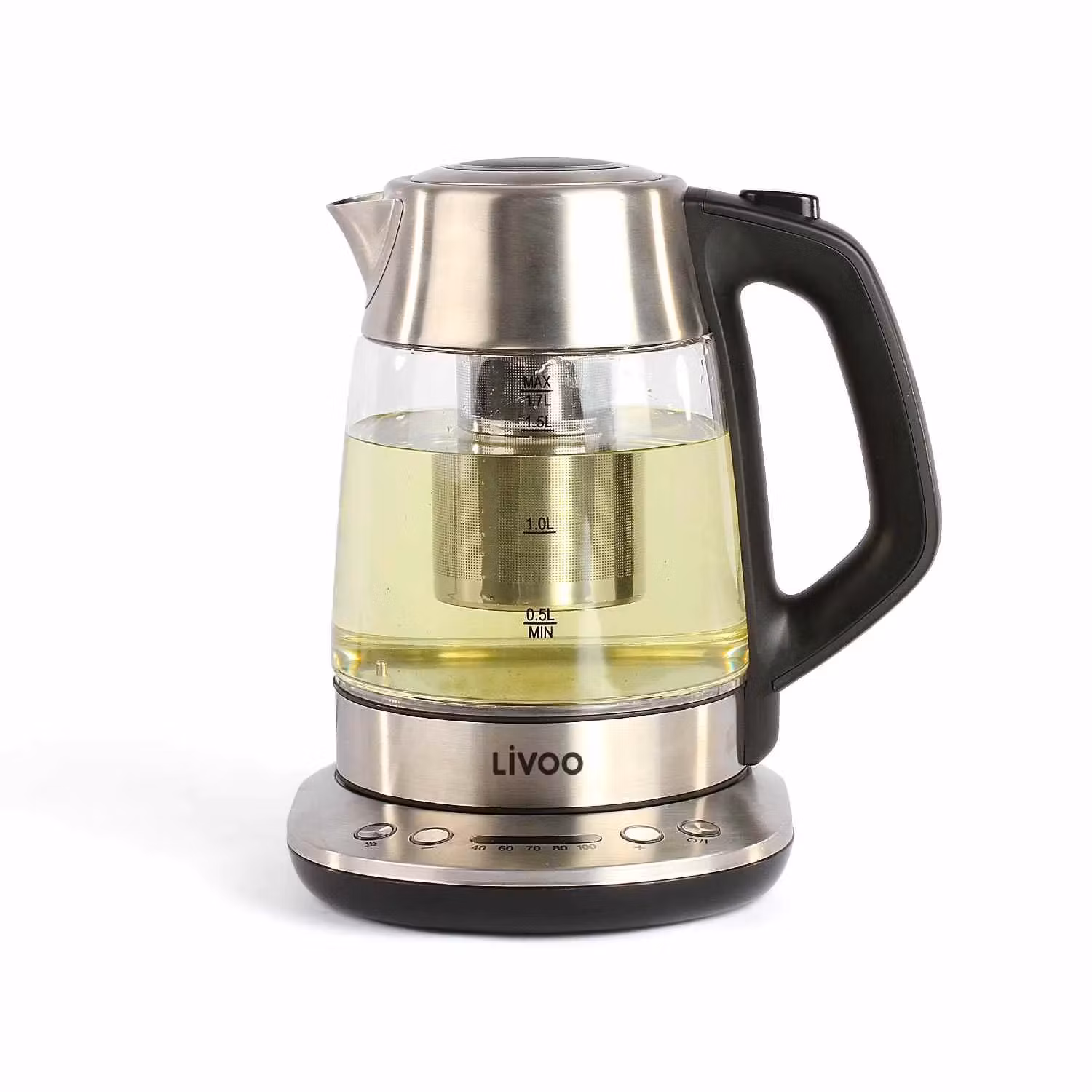 En vattenkokare i glas där du också snabbt kan fixa ditt te med den avtagbara teinfusern.