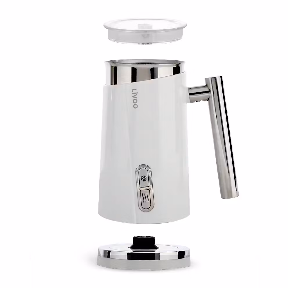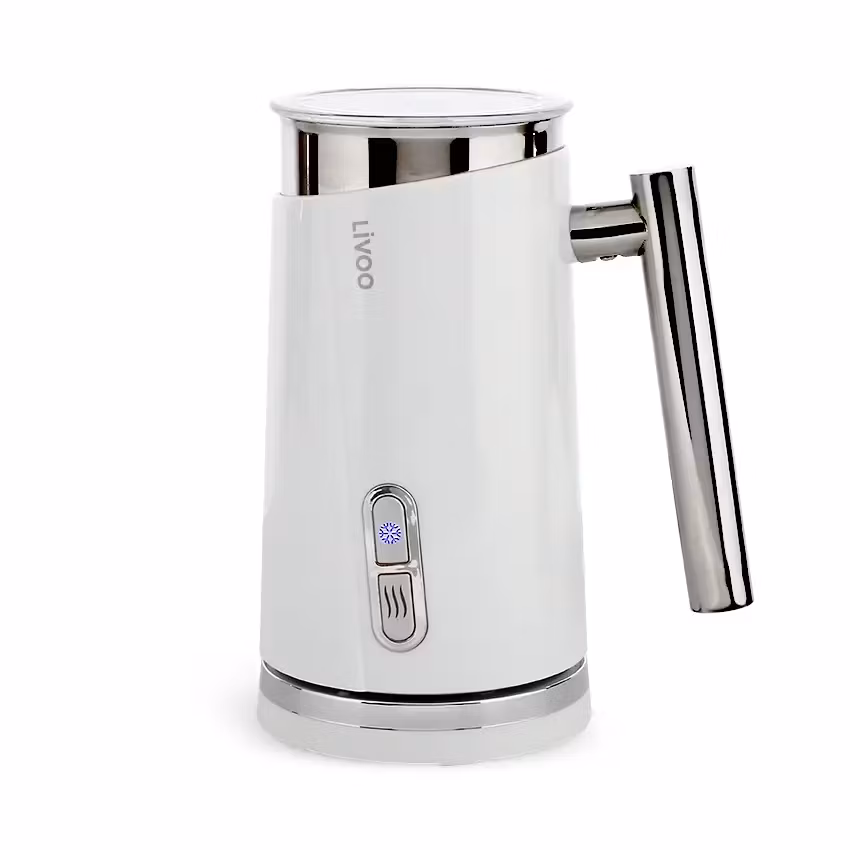 En elegant vit mjölkskummare från Livoo med 3 funktioner: varm mjölk, varm och kall mjölkskum.