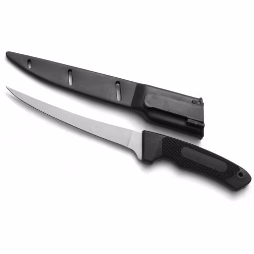 Finns i lager för omgående leverans! Filékniv Fisherman #2 99 kr 79 kr Lägg i varukorgen Artikelnummer: 801176 Leverantör: BRIV Filékniv i rostfritt stål med greppvänligt svart handtag i plast-/gummimaterial. Slida i svart plast med bältesfäste. Bladlängd: 15,5 cm.