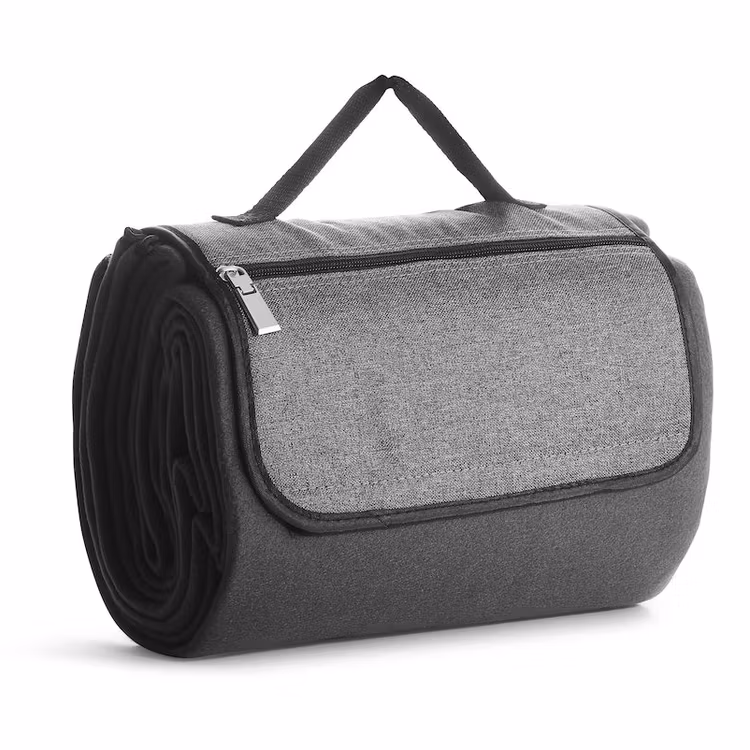 Lyxig picknickpläd från Sagaform med vattenavvisande undersida och fack med dragkedja för förvaring. Pläden rullas enkelt och smidigt ihop och kan sedan bäras i handtaget.