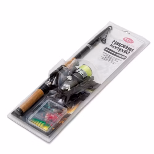 Teleskopspö med bakbromsad haspelrulle och fyra kullager. Spöt är tillverkat i glasfiber och har en totallängd på 210 cm. I setet ingår tre stycken drag, mjukwobbler, skeddrag samt spinnare. På förpackningen medföljer monteringsanvisning samt tips och råd kring fisket.
