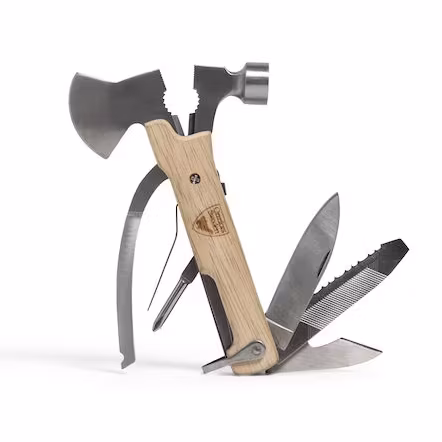 Behöver du laga bilen, hugga ved eller spika i en spik? Vad du än ska fixa med så är detta multiverktyg från Orrefors Hunting en bra följeslagare. Här finns; tång och avbitare, hammare, liten yxa, knivar, nagelfil, plattmejsel x2, kryssmejsel samt burköppnare. Levereras i en snygg canvaspåse och presentkartong.