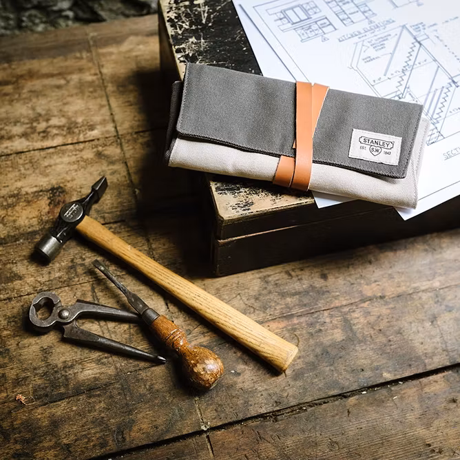 Förvara verktyg, hygienartiklar, rakknivar eller andra viktiga tillbehör i den här verktygsrullen från anrika Stanley!