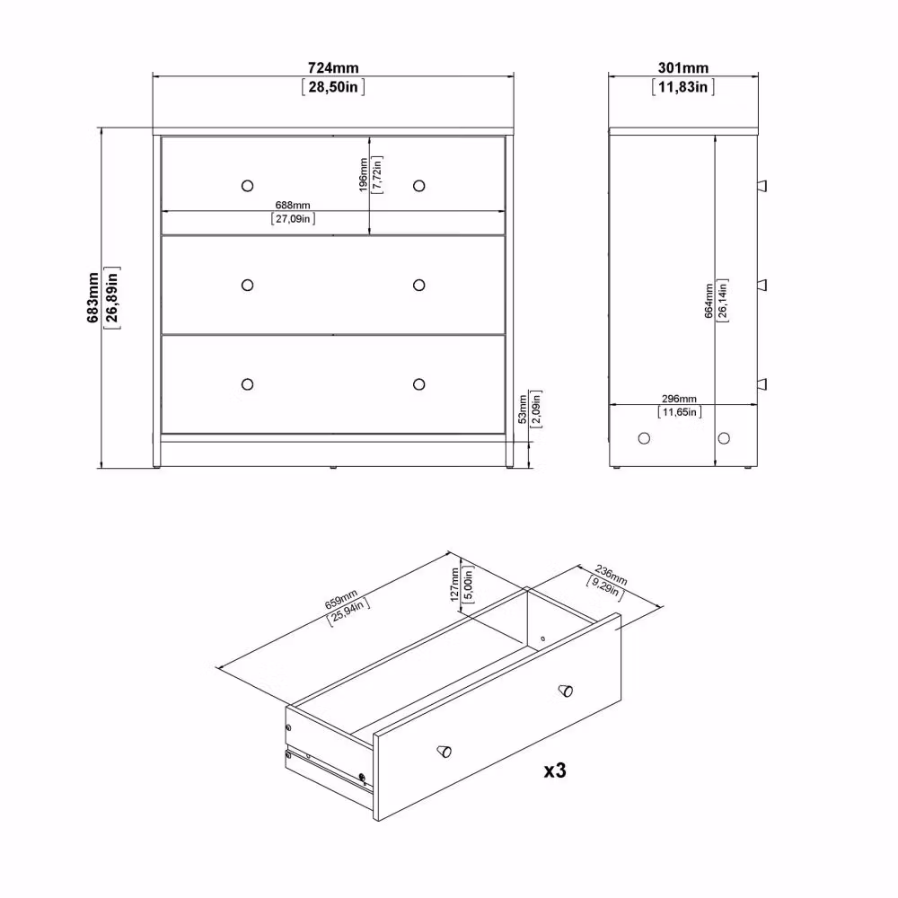 Byrå med 3 lådor vit May - Tvilum
