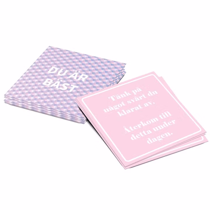 Peppa dig själv på ett enkelt sätt med inspirerande affir- mationer. Dessa kort peppar dig och gör dig medveten om alla dina positiva sidor. Dra ett kort om dagen för att påminna dig själv om vem du är och att du är bra!