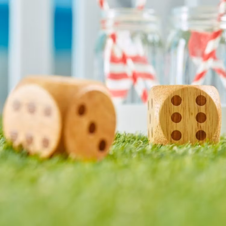 Ett yatzyspel för härliga dagar utomhus. Perfekt som midsommarlek eller som underhållning medan man väntar på att grillen ska bli klar. Fem tärningar och ett klassiskt yatzy-block.
