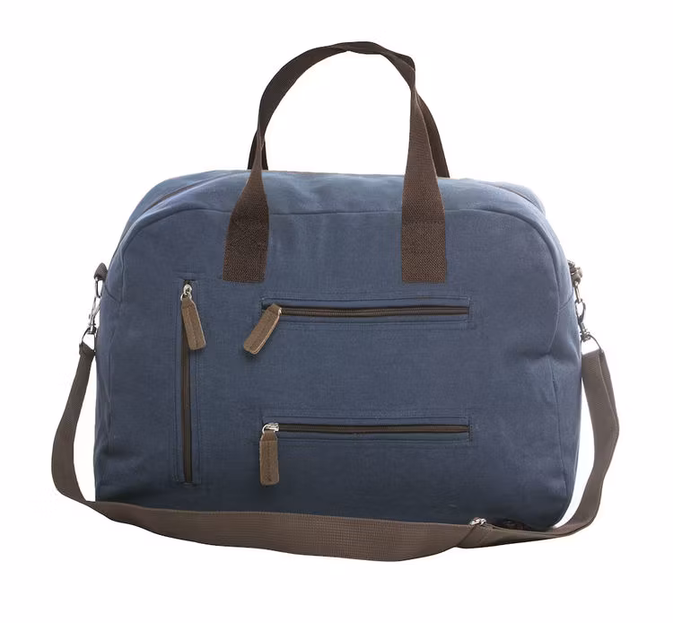 Praktisk och rymlig axelväska i stentvättad canvas med läckra detaljer i läderimitation. Två förvaringsfickor på utsidan och en på insidan. Axelrem ingår.