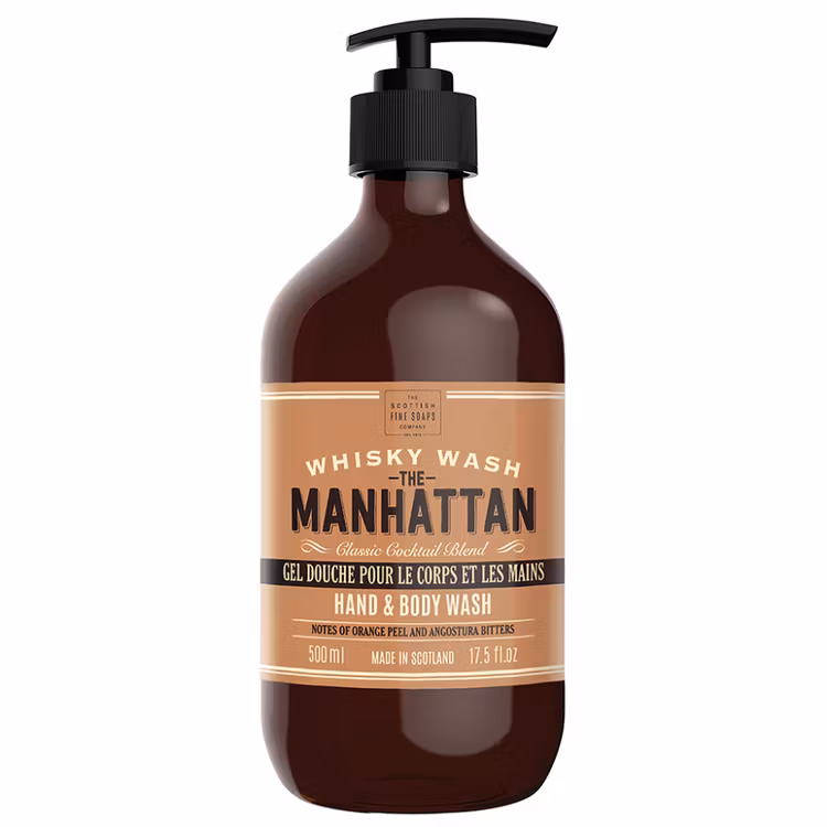 The Scottish Fine Soaps Hand & Body Wash kan användas både som handtvål och duschtvål. Den kommer i en lyxigt stor 500 ml förpackning och ger en doft baserad på den populära whiskytvålen The Manhattan.